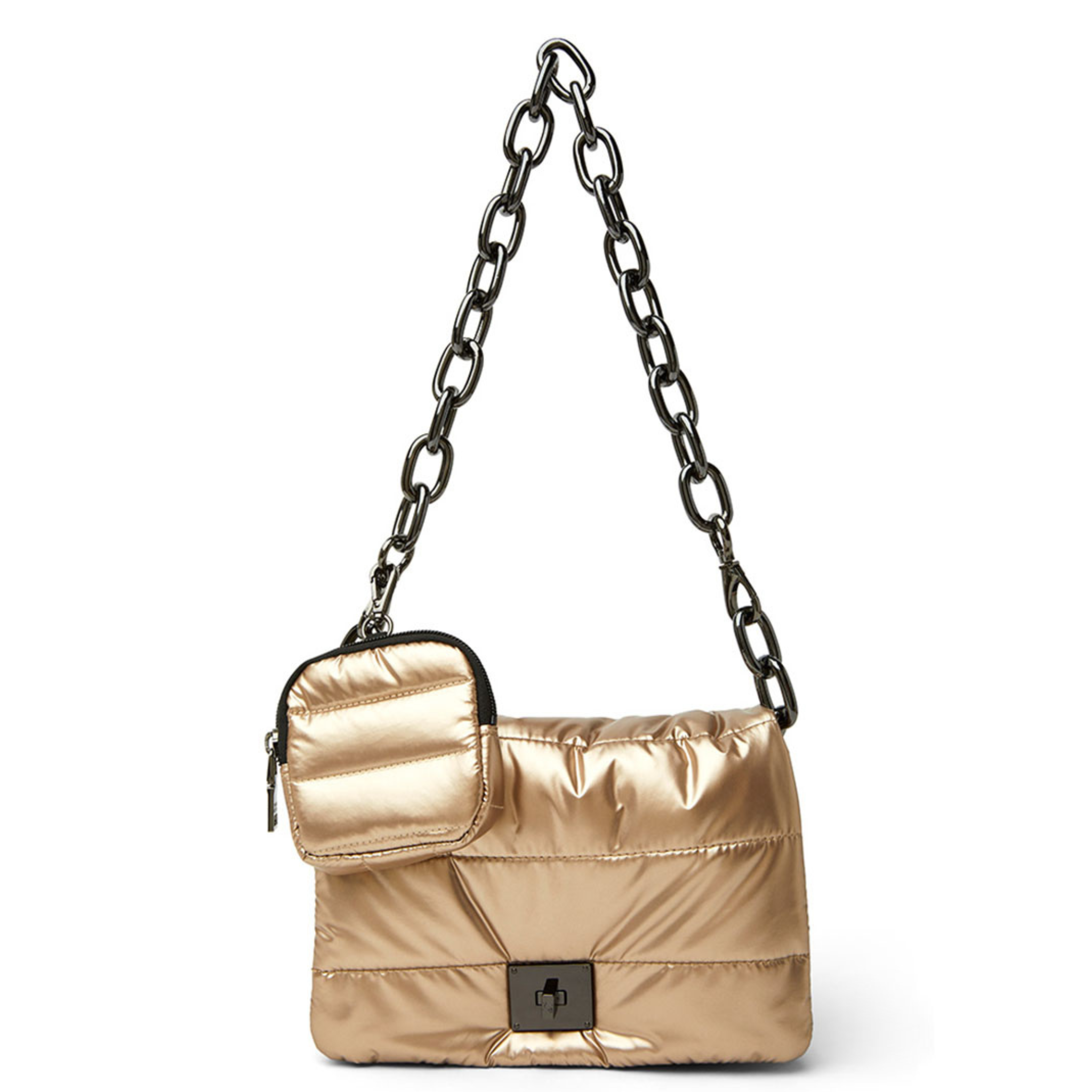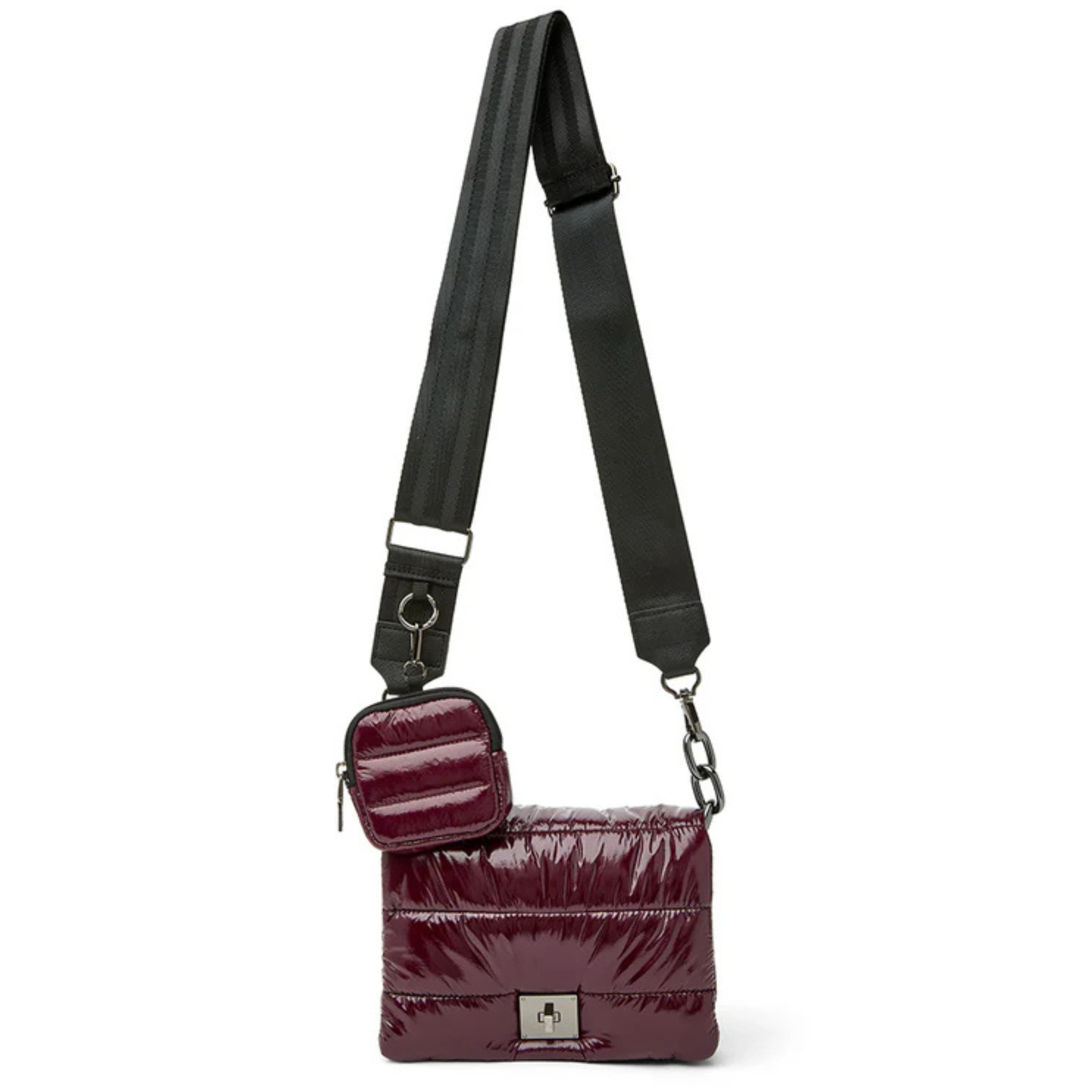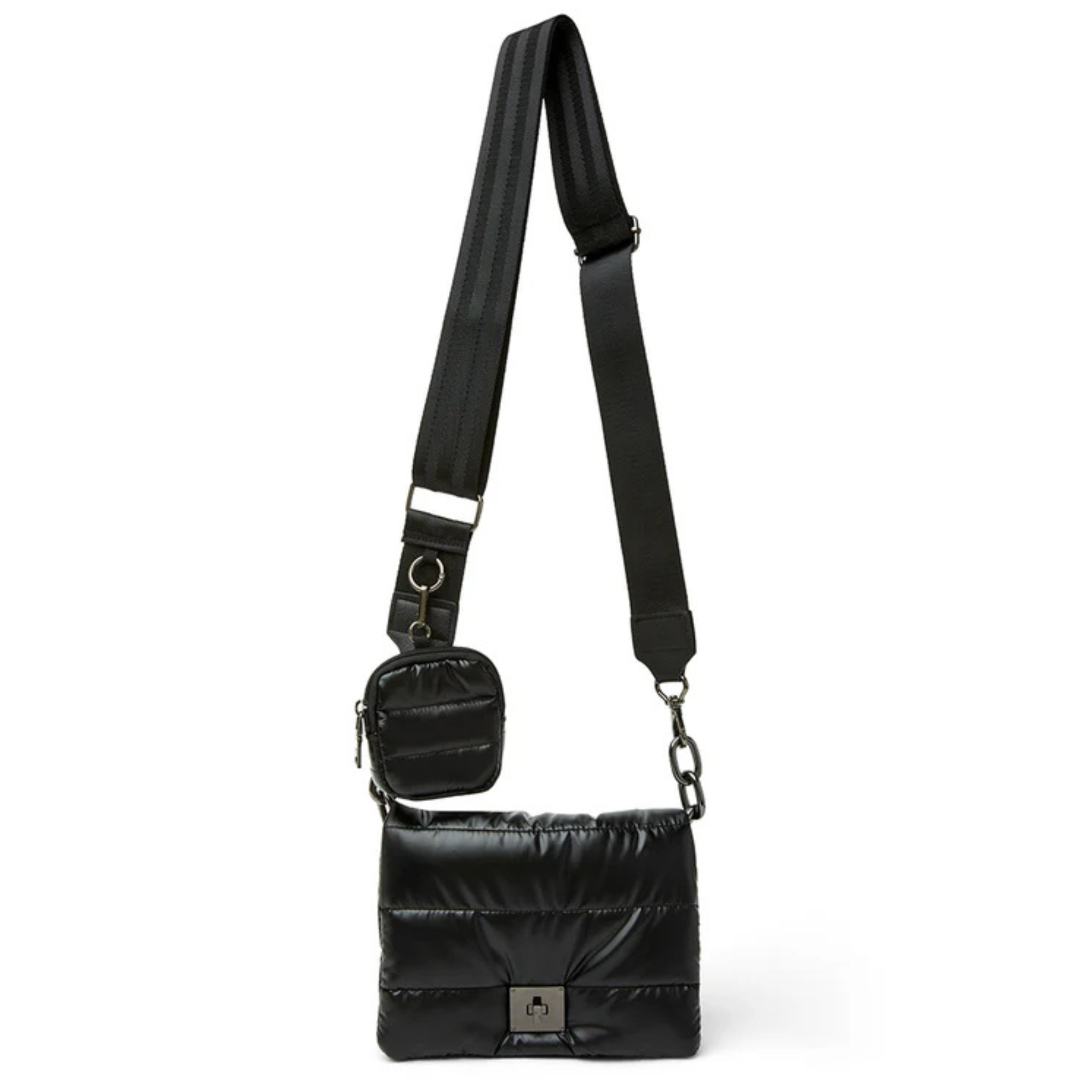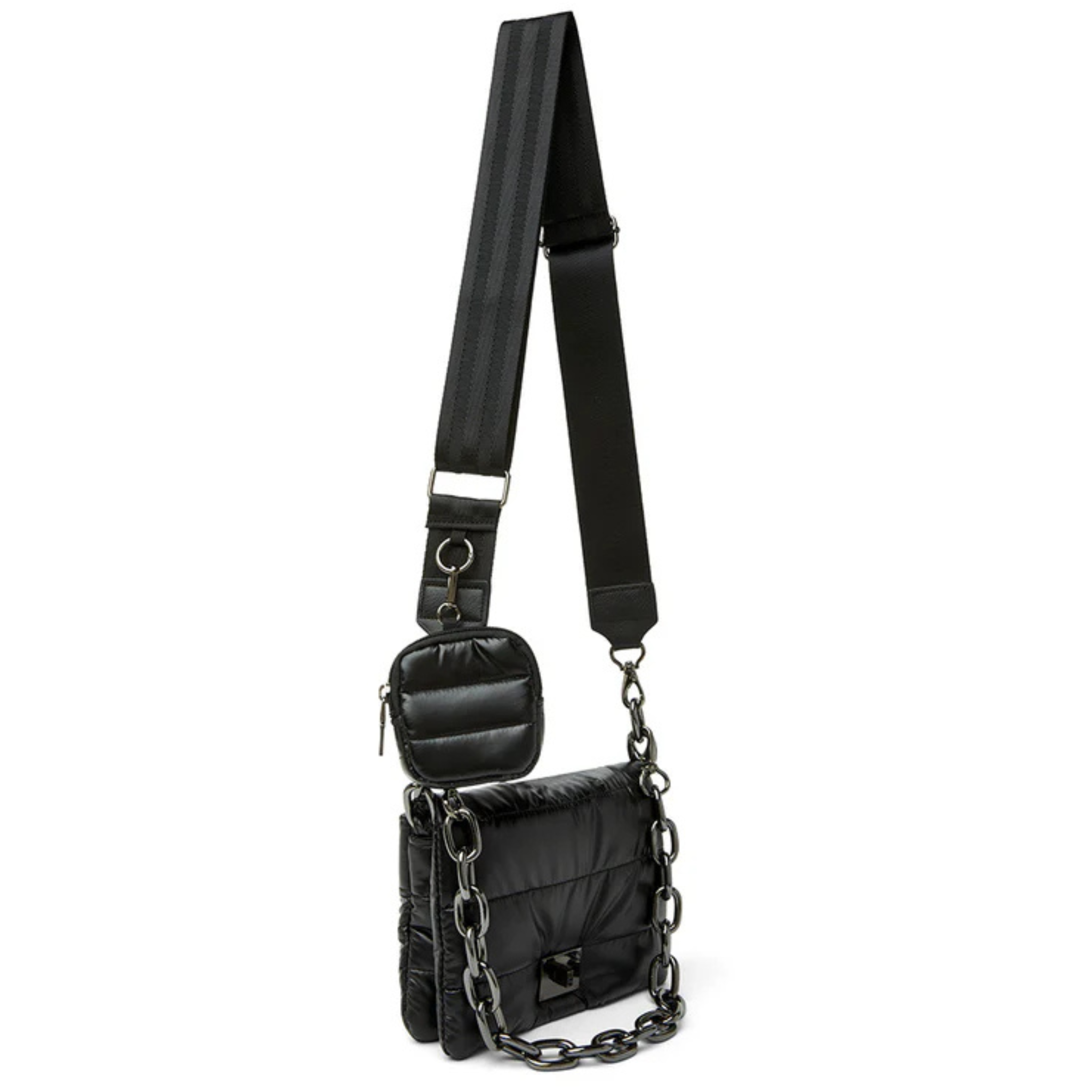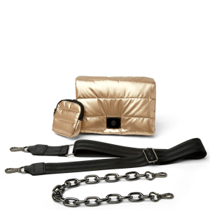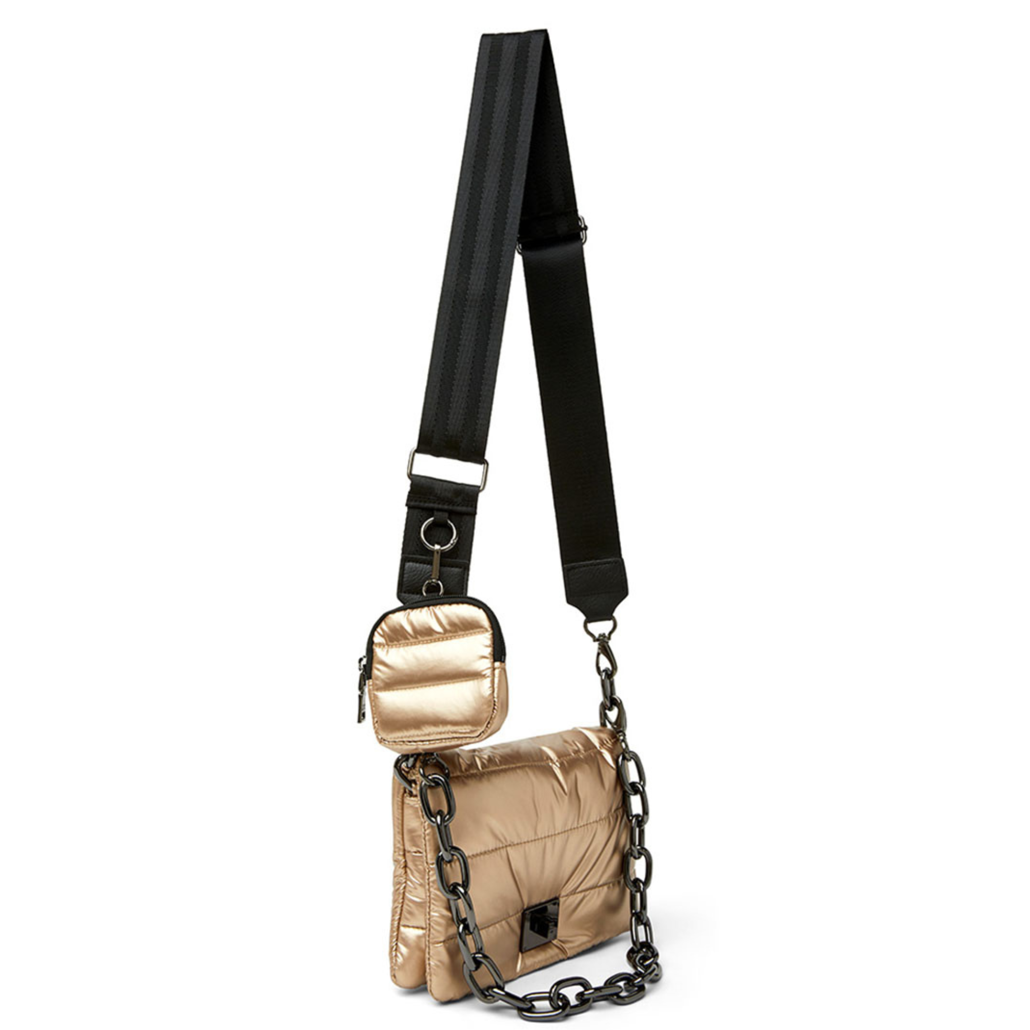 - Adjustable/detachable crossbody luxe trim strap