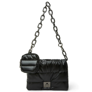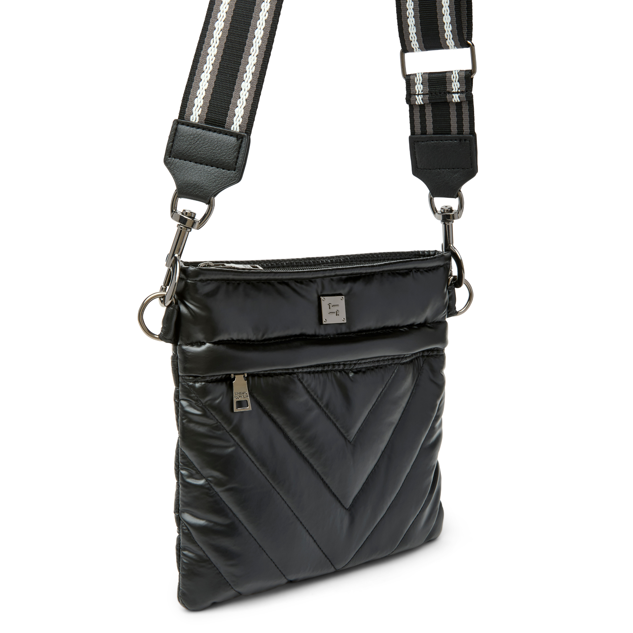 Introducing your new best friend, the Sidewalk bag from think royln! This North South Chevron Style Puffer Nylon Crossbody features convenient front and back zippers and an adjustable strap for all-day wear. Perfect for the on-the-go fashionista who doesn’t want to sacrifice style for practicality.